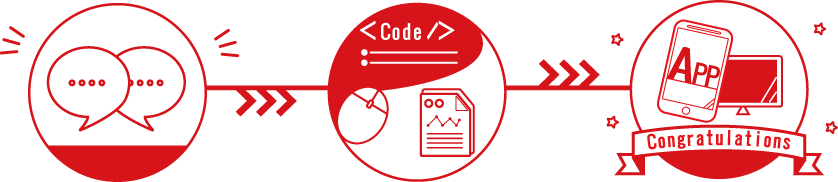 メンバー同士協力しあい、データを作成したりソフトウェアコードを書いたりして、あなたが教えてくれた課題を解決するサイトやアプリを提供します。これで地域課題が一つ解決し、高岡市とその周辺地域が「生活しやすく愛される地域」に向かって一歩前進します。